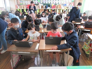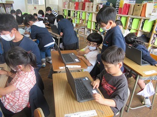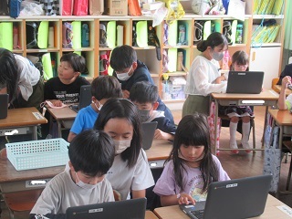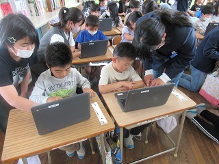 パスワードの打ち方は、6年生に教えてもらいました。