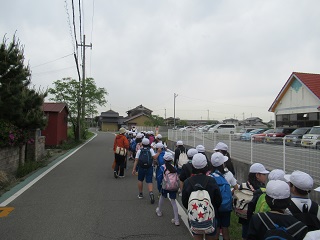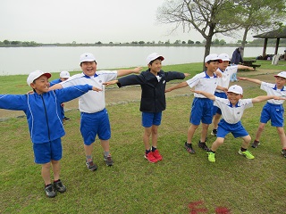 今日は、春の校外学習です。 全校生で加古大池に出発!!! |