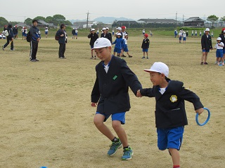 学年ごとにペアを決めて活動しました。 1年生は6年生と 2年生は5年生と 3年生は4年生と 上の学年のこどもたちがみんなで 楽しめる遊びを考えてくれ 仲良く交流ができました。 |
