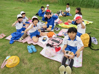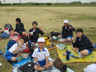 遊んだ後は、お弁当タイム!!! お家の人が一生懸命作ってくれたお弁当をみんなで楽しく食べました。 午後には、天気も良くなっていきました。 そして、学年ごとで遊びを再開! 楽しいひとときを過ごしました。 明日からも元気に登校しましょう! |