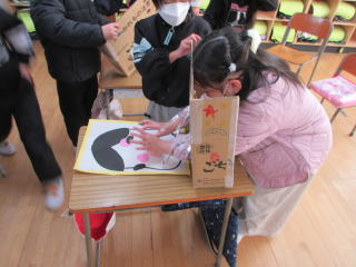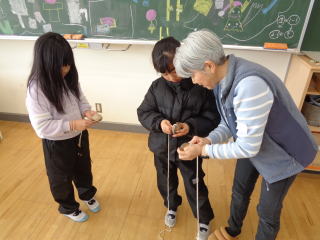 「はじめてお手玉したけど、教えてもらったら7回できるようになった!」 「また、おじいちゃんおばあちゃんと一緒に遊びたいな。」 「けん玉楽しかった!!」 嬉しそうにたくさん感想を伝えてくれました。 1年生は今日教えてもらったことを生かして、6日のチャレラン大会で昔遊びのお店を出します。 来てくださった、おじいさんおばあさん、楽しい時間をありがとうございました。 |