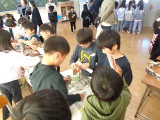 | 国語の「おもちゃの作り方」の単元で説明するの文章を作る難しさを体験しました。 そこからたくさんの人に説明してみよう!となりおもちゃランドになりました。 難しいかなとは思いながら途中で「説明するんおもしろい!」と発言している児童もおり、いい経験になりました。 多くの保護者の方に参加していただきありがとうございました。 |