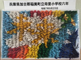 【平和セレモニー】 原爆の子の像の前で行いました。平和へのメッセージをしっかりと伝え、「折り鶴」を歌いました。寄贈したパネルにはみんなで決めた「未来」という言葉が入っています。平和な世界となり、私たちの希望がこの先ずっと未来まで続きますようにという願いが込められています。 |