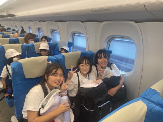 【新幹線】 初めて新幹線に乗る子どもたちもいます。新幹線の到着に大興奮の子どもたち。あっという間に広島に到着しました。 |
