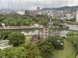 【折り鶴タワー】 12階の折り鶴広場から、原爆ドームを上から眺めることができました。 |
