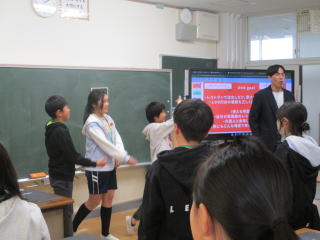 「外国語、Junior teacher」 最初の挨拶などを毎時間数人が、前に出て行います。「How are you everyone?」「Let‘s begin!」と授業が進んでいきます。だんだんと、同じ児童ばかりでなく、挑戦する児童がでてきました。次は、誰が前に出てくるのか楽しみです。振り返り動画を毎時間提出しますが、友だちと家族と、学校で家でと、それぞれ頑張っています。ぜひ、お子さんの振り返り動画に出演してみてください。 |