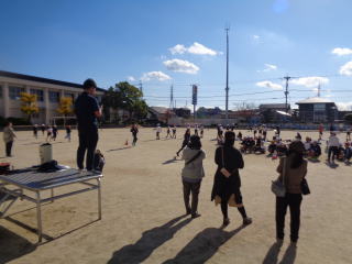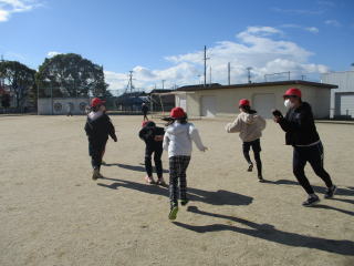 「スポーツ係によるふえ鬼」 スポーツ係の計画で、業間にクラス全員でふえ鬼をしました。何度も休み時間に集まって計画を立てていました。風はありましたが、青空のもと運動場を走り回って楽しみました。 |