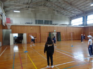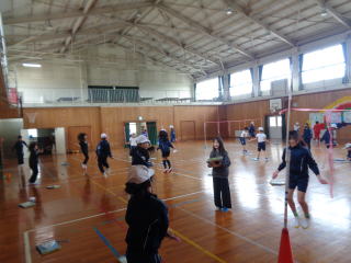 | 4年生 「体育 縄跳び・ソフトバレーボール」 来週に控えた縄跳び検定に向けて最後の追い込みです。ペアやグループになって記録更新を狙います。後ろ跳びのあや跳びや交差跳びに苦戦していました。 ソフトバレーも最後です。パス練習、アタック練習をして、最後の試合です。みんな声を掛け合って頑張っていました。 |