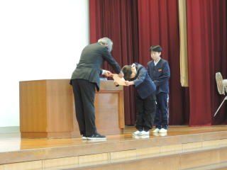 | 終業式終了後、たくさんの表彰がありました。表彰を見守る児童も大変大きな拍手で、その功績を称えることができました。 | |