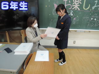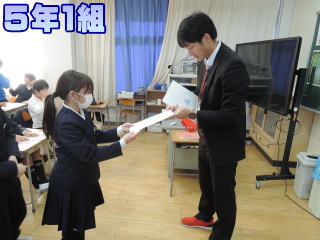 | 教室に戻り、「学びの姿」を担任の先生から返してもらいました。 「2学期は〇〇をよく頑張っていたね。」 「3学期は〇〇を頑張れるといいですね。」 |