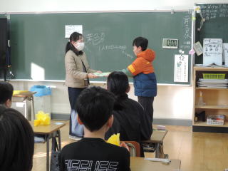 | 母里小学校では、スプーンおばさんと母里っ子ルームのみなさんに、月に数回、読み聞かせをしてもらっています。子どもたちが少しでも本に興味を持ったり、新たな本との出会いを楽しめるように、選書してくださっているので、子どもたちも毎回とても楽しみにしています。 今年度もありがとうございました。 |