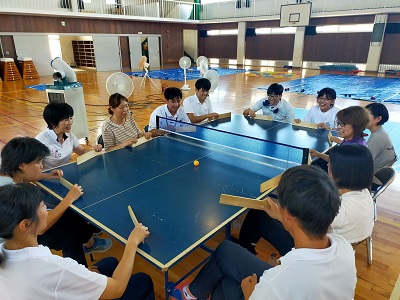 | パラスポーツの歴史やルール等について説明していただいたあと、 ボッチャと卓球バレーを体験しました。 |