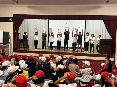 5日間過ごしたハチ高原に別れを告げ、 学校に帰ってきました。 帰校式では、話の聞き方や行動に 5日間の成長が表れていました。 |