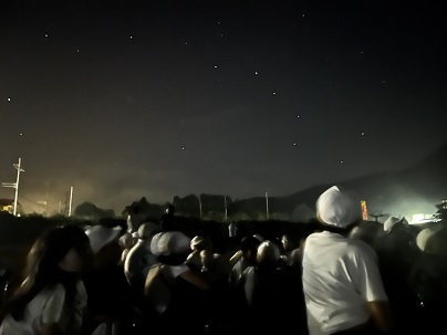 | 少し晴れ間が見えたので、 スターウォッチングも行いました。 北斗七星や夏の大三角がはっきりと見えました。 天の川やたくさんの星が見えて、 子どもたちも感動の夜を過ごしました。 |