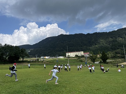 少し時間が空いた人たちは、宿舎前の広場で時間を過ごしました。 友だちやリーダーと「鬼ごっこ」や「だるまさんがころんだ」をして、走り回っていました。 最終日ですが、まだまだ元気な人たちがいっぱいいるようでした。 |