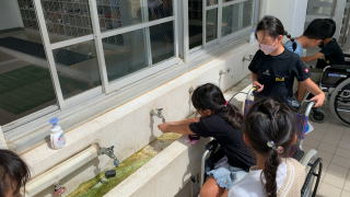 段差、坂道など、普段何気なく歩いているところでも 車いすに乗っていると不安になることを実感していました。 「もうすぐ坂だよ。」「段差があるよ。」など、 車いすに乗っている人のことを思いやって 声かけすることができましたね。 |