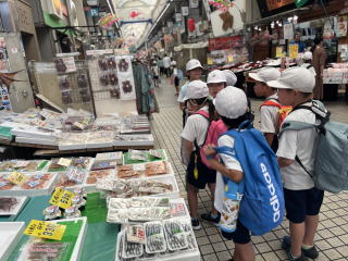 魚の棚商店街で、家族への お土産を買いました。 たくさんの魚介類が並んでいて、 見ているだけで楽しくなります。 限られた予算の中でどれを買うか、 子ども達は悩んでいました。 |