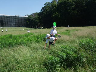 講師の八木先生の話を聞いてから、 草むらで元気いっぱい虫取りをしました。 |
