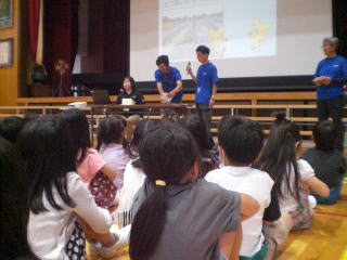 1学期に植えたさつまいもの苗が育ってきて、 さつまいも掘りの日が近づいてきました。 JA青壮年部の方に来ていただき、 さつまいもが食べられるまでのことを 教えてもらいました。 |