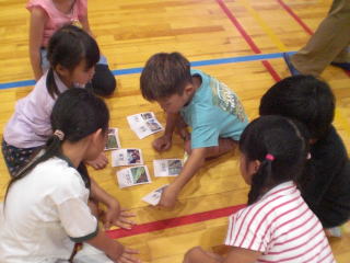 「畝立て」や「定植」など 初めて聞く言葉の説明をヒントに 相談をしながらカードを並びかえました。 |