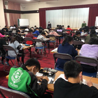 午後から雨の予報なので、先にオリエンテーリングをしました。地図を見ながらポイントへ班で協力して向かいます。ポイントには先生やリーダーさんのクイズが待っています。 最後にクイズの答え合わせ |