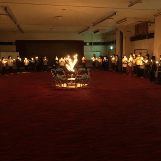 自然学校最終夜は、キャンドルサービス。 キャンドルの火をつけたあとはスタンツの披露です。 最後全員に火を灯します |