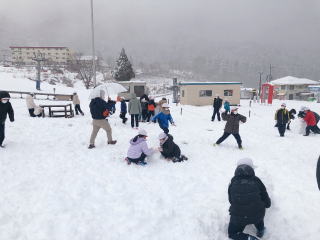 【雪遊び】 ハチ高原は雪のシーズン! ゲレンデで雪遊びを楽しみました。 これも、普段経験できないことですね。 |
