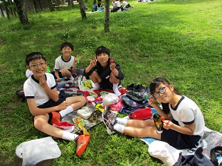 大きなケガも事故もなく全員が帰ってきました。とても楽しかったです。草によるアレルギー反応がでている児童もいます。帰ったらよく見てあげてください。よろしくお願いします。 |