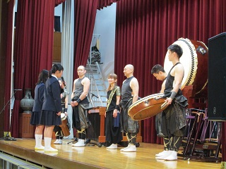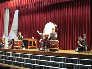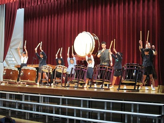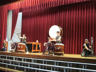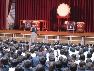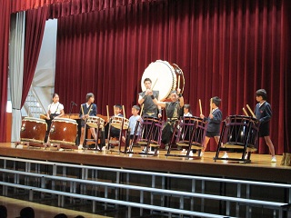 児童の感想 今日はありがとうございました。最初に和太鼓の音が鳴ったとき、心臓に響いてビックリしました。1曲目の前にいた宮太鼓の2人の息がぴったりと合っていてめちゃくちゃ速いのにそれでも合っているのがすごくておどろきました。音の粒が短くて誰でもどの楽器もできていてすごかったです。とても楽しかったです。 Y/S 今日は、それぞれの太鼓の音色が曲によって違うところや力強く迫力のある演奏をありがとうございました。きょうの演奏の中で1番すごいなと思ったのは、あんなに長い曲でずっと太鼓をたたき続けているのがすごいなと思いました。だから松村組のみなさんは腕がムキムキなんだなとわかりました。阪神淡路大震災で応援している曲を作っていることを知ってもっとすごいなと思いました。今日は本当にありがとうございました。 T/S まず、最初に言えるのは、感動したというj事です。和太鼓っていうのはこんなにも心に響いて夢中で聞きたくなるものだと初めて知りました。音のひとつひとつが重くて深かったです。からだで感じ取って聞くとリズムが速くてとても細かい音を出していることがわかりました。とても長い時間たたいているのに疲れた顔を見せないところもすごいです。和太鼓は体でも心でも目でも耳でも感じて聞くことのできる素晴らしい楽器だと思いました。私は今までの芸術鑑賞会で1番心に響きました。 F/K |