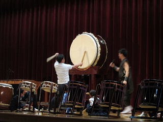 今日は芸術鑑賞会を行いました。天満東小学校児童はもちろん、天満東幼稚園のみなさんと、バンビ第2保育園のみなさんも一緒に鑑賞しました。和太鼓の音を間近で聞くという体験を初めてした子ども達にとっては、忘れられない1日となったようです。そして和太鼓を打つ体験もできました。とてもこ貴重な時間をもつことができました。和太鼓松村組のみなさん、ありがとうございました。 |