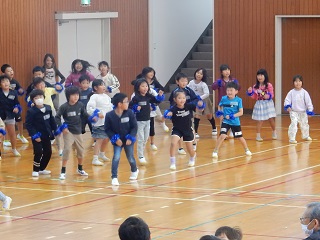 いなみ野特別支援学校の子どもたちが東小学校に来てくれました。体育館で2年生と交流学習をしました。2年生は、自分たちが大好きなダンス(運動会で披露した Let’s 三原色 Dance! です)を踊りました。最後は、教師も子どもも全員で、バナナくん体操を踊りました。 |