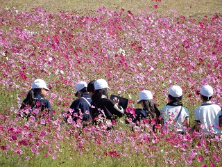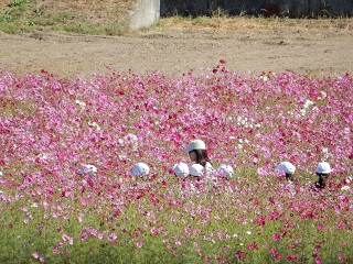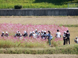 東小学校の周りを囲むように、美しいコスモス畑があります。このコスモス畑を眺めながら登下校している子どもたちも多いです。贅沢な風景です。 今日は、4年生が図工の時間にコスモス畑に行きました。タブレットで撮影したりして、学校に戻ってコスモスを描きます。 |