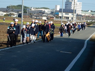 おはようございます。立冬を過ぎ、季節は冬に向かっているなということを感じる朝晩の冷え込みです。今朝は、児童委員の皆様が児童虐待防止月間に合わせて、地域の見守りの目を広げるとともに、登校時の挨拶をきっかけに、学校外でも児童委員とのつながりを感じられるようにと、「朝の挨拶運動」実施してくださいました。 |