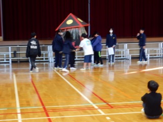 | 12月13日(土)の東フェスに参加できなかったクラスを対象に本日東フェス 第2弾を開催しました。お神輿が登場し、全員で「ソレ ヨーイヤサー」と掛け声をしながら練り歩きました。 | |