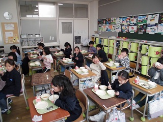 各クラスで説明があり、みんなで「いただきます」をしました。 |