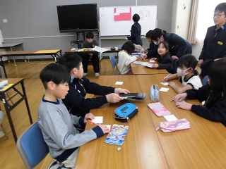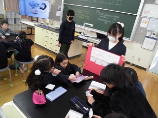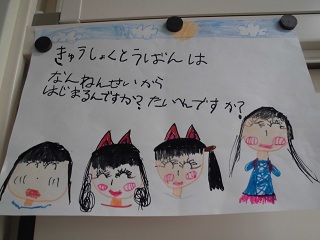 今日は今年度最後の縦割り班活動です。 天満東幼稚園とバンビ第2こども園から、たくさんの質問が届きました。今日はみんなでこれらの質問に答えます! |