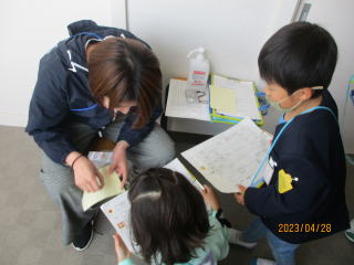 探検が終わったら 教室の前で先生からシールを 貼ってもらいます。 |