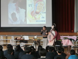 赤ちゃんがどのようにこの世に 誕生するのかについて教えて いただきました。 4時間目の体験学習は 6年生が行いました。 |