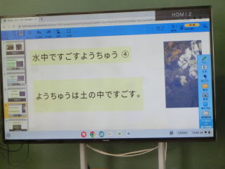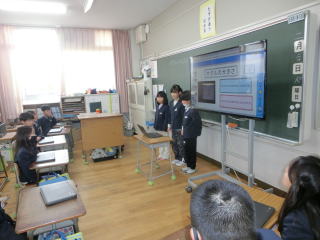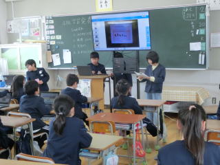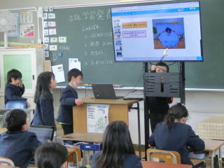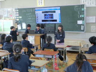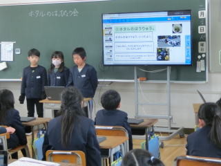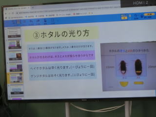 ほたるの学習まとめ (2月20日) 1月25日に行った ほたるの幼虫放流授業の まとめの発表会を行いました。 縦割り班での発表、 参観授業での発表に続いて 今日は、3回目の発表になりました。 |