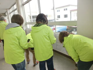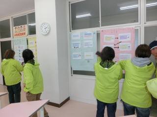 廊下に掲示しているホタルの幼虫放流 観察記録を見ていただきました。 |