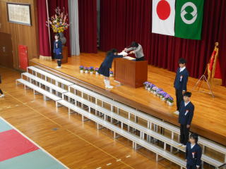 今日の卒業式には5年生が 下級生を代表して参加し、 副キャプテンとしての務めを 十分に果たすことができました。 キャプテンのバトンは 渡されました♪ |