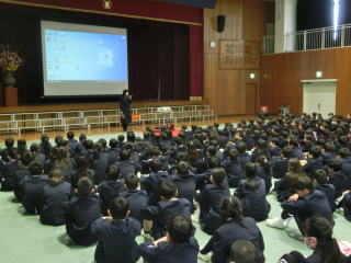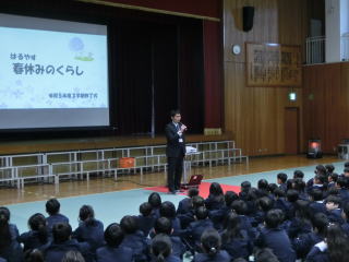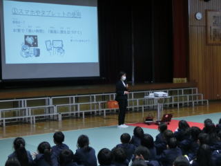 生徒指導の先生からは 春休みのくらしについて 特にスマホやタブレットを使うときの注意点、 についてお話がありました。 |