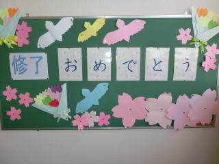 令和5年度修了式 (3月22日) ![]() 校舎内の掲示は 昨日の「卒業おめでとう」から 「修了おめでとう」に変わっています。 今の学年での最後の1日となりました。 |