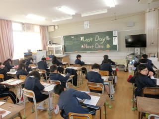 ![]() 各クラスともに担任の先生とゆっくりお話を しながら1年間の頑張りを 振り返りました。 教室のみんなも集中しています。 |
