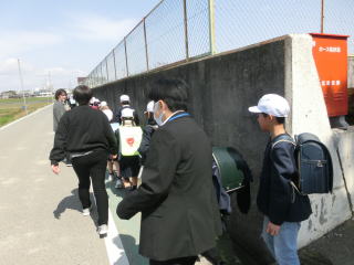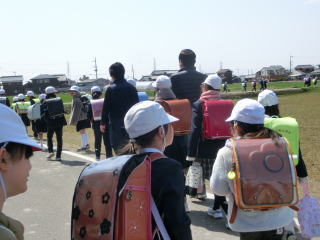 今日は下校引率です。 危険個所を確認しながら 帰ります。 始業式は4月8日です。 元気なみんなに会えることを 楽しみにしています。 |