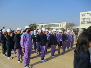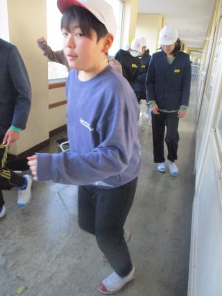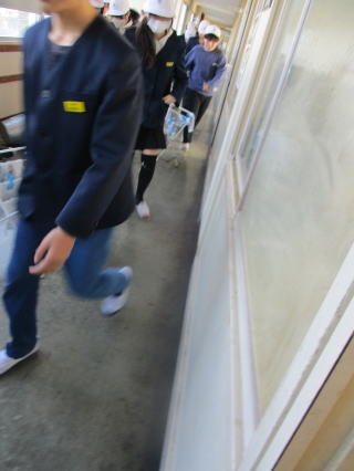 | 地震を想定した避難訓練を行いました。訓練前には、事前の防災学習を各クラス等で実施しました。今回は廊下などに地震でガラスが割れて飛び散ったり、いろいろなものが散乱していたりと安全を確かめながら避難できるか訓練しました。 | |