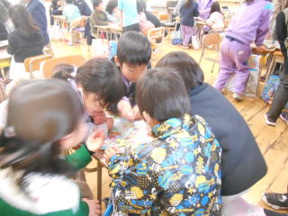 体験入学 1年生の教室で1年生が算数の授業を園児の皆さんが見学しました。 一緒にすごろくもして楽しみました。 |