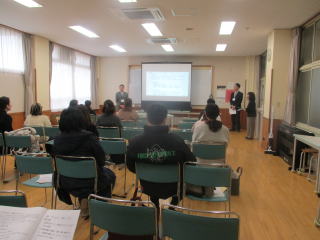 | 保護者の方に,本校の教育方針、入学準備品などを説明しました。 また、PTAの方から、活動の様子、ミマモルメの業者さんから商品の紹介などもありました |