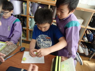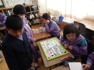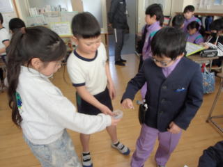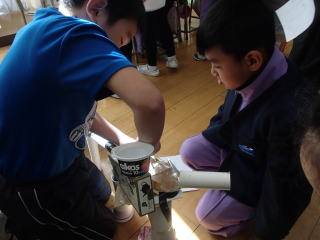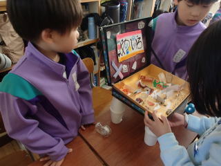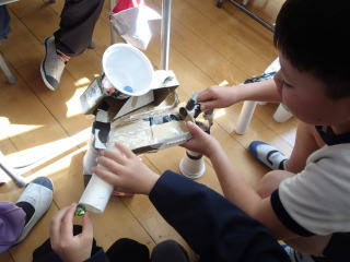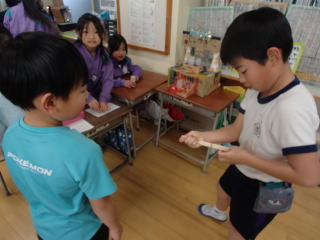 1年生は2年生の作ったおもちゃで一緒に遊ばせてもらって楽しみました。また、どの班も1年生を楽しませる工夫がもりだくさんありました。 自分で作ったおもちゃで自分たちも遊ぶことができて楽しそうな2年生でした。 |