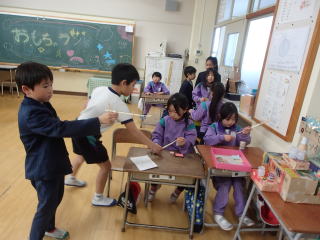 | 4時間目 生活科 1,2年生 「おもちゃランド」 2年生は1年生を招待して「おもちゃランド」を開きました。 |
